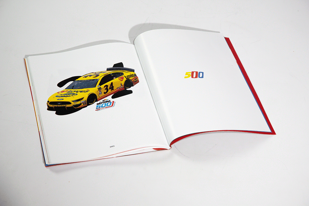 Created through the collection and compilation of images from 1959 to 2021. “500” is an experimental zine which compares and contrasts stock cars from the “Daytona 500,” a 500-mile-long NASCAR Cup Series motor race held annually at Daytona International Speedway in Daytona Beach, Florida.